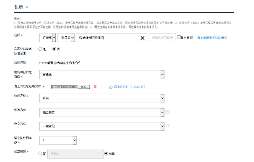 5、填寫公司住所信息,上傳租賃合同,房產證,填寫房東或者物業的聯系方式等等。